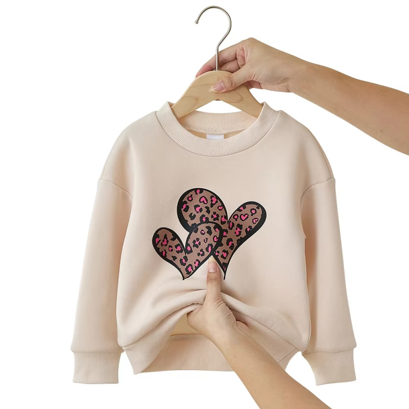 YYO Custom Fashion Design Girls Cute Outfit Two Piece Clothing Set With Leopard Heart Print Pants Autumn Outfit for 2-7Y Kids image